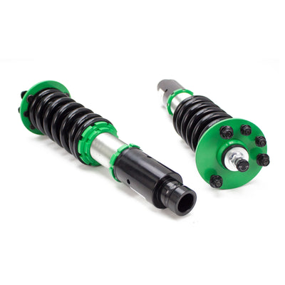 Hyper-Street II Coilover is an entry level suspension upgrade, which features mono-tube shocks with 32-way adjustable rebound settings. The Coilover have full height adjust-ability, which can be adjusted by twisting the lower bracket, instead of compressing the spring. By using Mono-Tube shocks, the shocks provide a larger capacity of oil and gas. Thus providing a better ride compared to lowering springs and stock shocks combination. The springs we provide are rated specifically to help improve the handling performance. The 32 clicks of valving will allow users to fine tune the rebound force setting, to ease comfort in the ride. By shortening the pitch distance, the independent spring tension and fully adjustable lengthen shocks will allow a nice drop in height, without sacrificing the comfort.