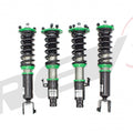 Hyper-Street II coilover suspension upgrade features mono-tube shocks with 32 clicks rebound settings and full length adjustable. Mono-tube shocks provides larger capacity for gas and oil to improve comfortable level of typical lowering vehicle. Special 32 clicks of valving allows user to fine tune rebound force settings. Independent spring tension and full length adjustable allows drop without sacrifice comfort by shorten pitch distance.