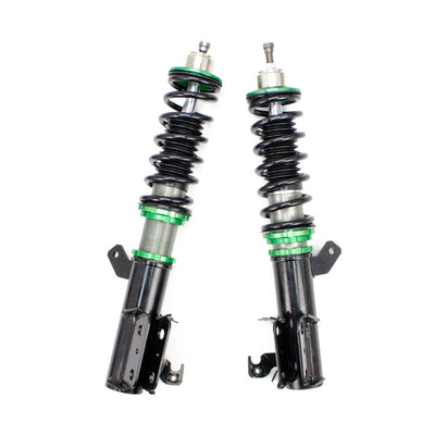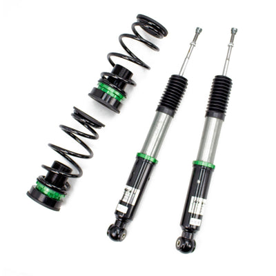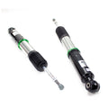 Hyper-Street II coilover suspension upgrade features mono-tube shocks with 32 clicks rebound settings and full length adjustable. Mono-tube shocks provides larger capacity for gas and oil to improve comfortable level of typical lowering vehicle. Special 32 clicks of valving allows user to fine tune rebound force settings. Independent spring tension and full length adjustable allows drop without sacrifice comfort by shorten pitch distance.