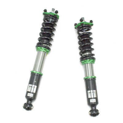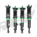 Hyper-Street II coilover suspension upgrade features mono-tube shocks with 32 clicks rebound settings and full length adjustable. Mono-tube shocks provides larger capacity for gas and oil to improve comfortable level of typical lowering vehicle. Special 32 clicks of valving allows user to fine tune rebound force settings. Independent spring tension and full length adjustable allows drop without sacrifice comfort by shorten pitch distance.