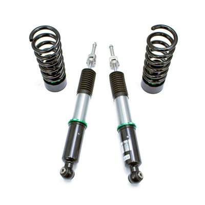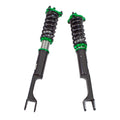 Hyper-Street II coilover suspension upgrade features mono-tube shocks with 32 clicks rebound settings and full length adjustable. Mono-tube shocks provides larger capacity for gas and oil to improve comfortable level of typical lowering vehicle. Special 32 clicks of valving allows user to fine tune rebound force settings. Independent spring tension and full length adjustable allows drop without sacrifice comfort by shorten pitch distance.