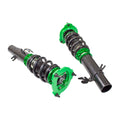 Hyper-Street II coilover suspension upgrade features mono-tube shocks with 32 clicks rebound settings and full length adjustable. Mono-tube shocks provides larger capacity for gas and oil to improve comfortable level of typical lowering vehicle. Special 32 clicks of valving allows user to fine tune rebound force settings. Independent spring tension and full length adjustable allows drop without sacrifice comfort by shorten pitch distance.