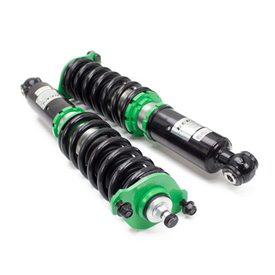 Hyper-Street II coilover suspension upgrade features mono-tube shocks with 32 clicks rebound settings and full length adjustable. Mono-tube shocks provides larger capacity for gas and oil to improve comfortable level of typical lowering vehicle. Special 32 clicks of valving allows user to fine tune rebound force settings. Independent spring tension and full length adjustable allows drop without sacrifice comfort by shorten pitch distance.