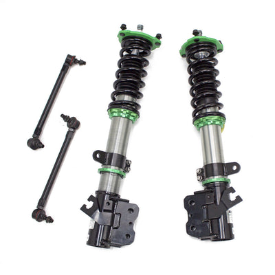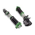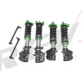 Hyper-Street II coilover suspension upgrade features mono-tube shocks with 32 clicks rebound settings and full length adjustable. Mono-tube shocks provides larger capacity for gas and oil to improve comfortable level of typical lowering vehicle. Special 32 clicks of valving allows user to fine tune rebound force settings. Independent spring tension and full length adjustable allows drop without sacrifice comfort by shorten pitch distance.