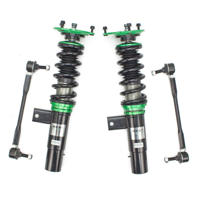 Hyper-Street II coilover suspension upgrade features mono-tube shocks with 32 clicks rebound settings and full length adjustable. Mono-tube shocks provides larger capacity for gas and oil to improve comfortable level of typical lowering vehicle. Special 32 clicks of valving allows user to fine tune rebound force settings. Independent spring tension and full length adjustable allows drop without sacrifice comfort by shorten pitch distance.