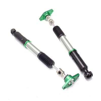 Hyper-Street II coilover suspension upgrade features mono-tube shocks with 32 clicks rebound settings and full length adjustable. Mono-tube shocks provides larger capacity for gas and oil to improve comfortable level of typical lowering vehicle. Special 32 clicks of valving allows user to fine tune rebound force settings. Independent spring tension and full length adjustable allows drop without sacrifice comfort by shorten pitch distance.