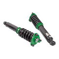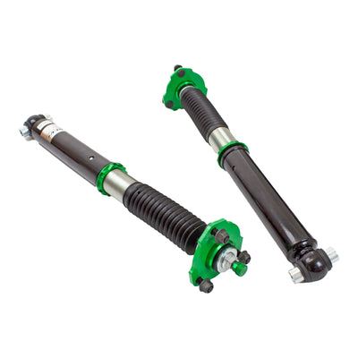 Hyper-Street II coilover suspension upgrade features mono-tube shocks with 32 clicks rebound settings and full length adjustable. Mono-tube shocks provides larger capacity for gas and oil to improve comfortable level of typical lowering vehicle. Special 32 clicks of valving allows user to fine tune rebound force settings. Independent spring tension and full length adjustable allows drop without sacrifice comfort by shorten pitch distance.