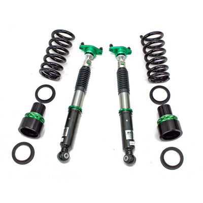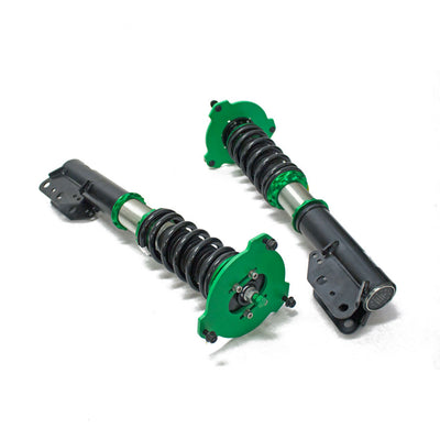 Hyper-Street II coilover suspension upgrade features mono-tube shocks with 32 clicks rebound settings and full length adjustable. Mono-tube shocks provides larger capacity for gas and oil to improve comfortable level of typical lowering vehicle. Special 32 clicks of valving allows user to fine tune rebound force settings. Independent spring tension and full length adjustable allows drop without sacrifice comfort by shorten pitch distance.