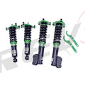 Hyper-Street II coilover suspension upgrade features mono-tube shocks with 32 clicks rebound settings and full length adjustable. Mono-tube shocks provides larger capacity for gas and oil to improve comfortable level of typical lowering vehicle. Special 32 clicks of valving allows user to fine tune rebound force settings. Independent spring tension and full length adjustable allows drop without sacrifice comfort by shorten pitch distance.
