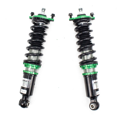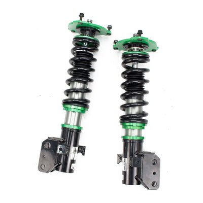 Hyper-Street II coilover suspension upgrade features mono-tube shocks with 32 clicks rebound settings and full length adjustable. Mono-tube shocks provides larger capacity for gas and oil to improve comfortable level of typical lowering vehicle. Special 32 clicks of valving allows user to fine tune rebound force settings. Independent spring tension and full length adjustable allows drop without sacrifice comfort by shorten pitch distance.